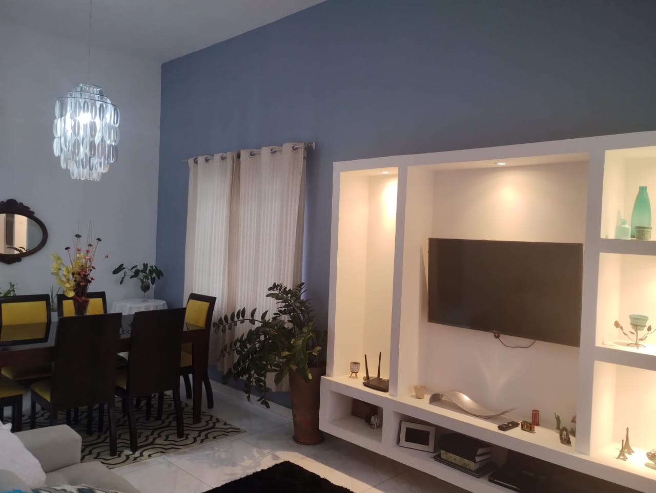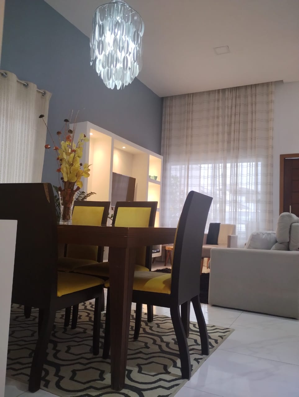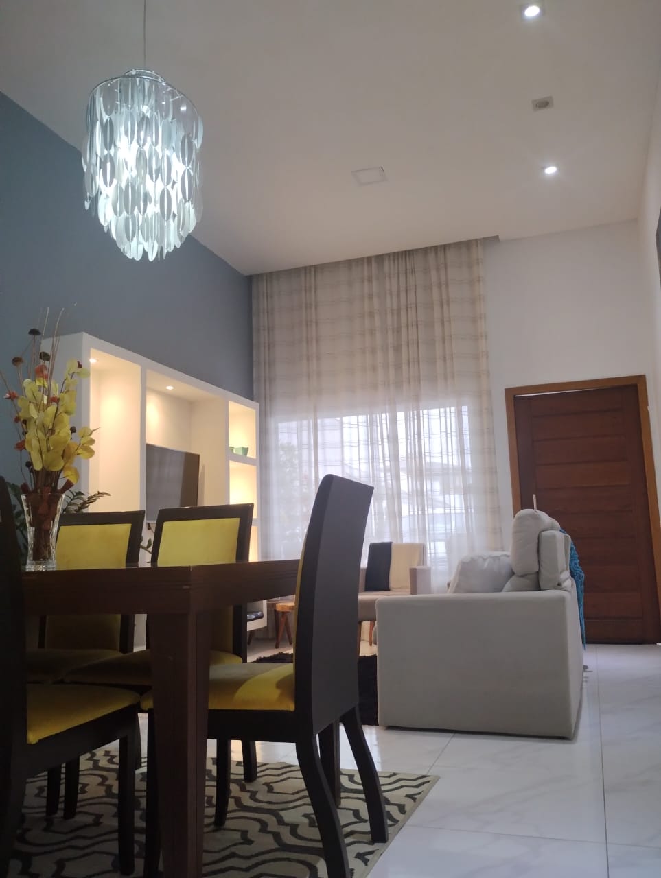 Sala ampla integrada à cozinha